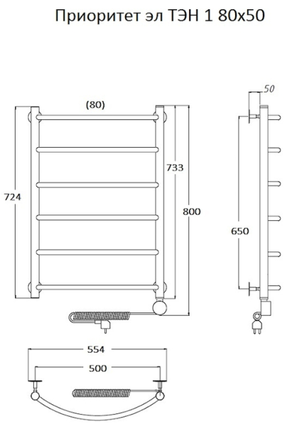 Электрический полотенцесушитель Тругор Приоритет 1 80x50см хром Приоритет1/элТЭН8050