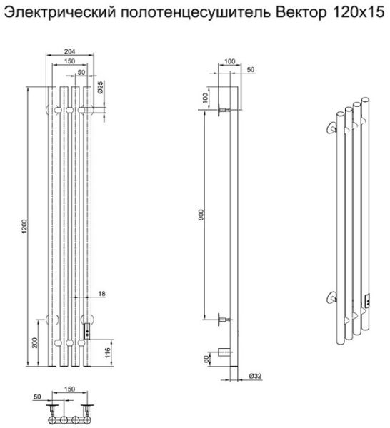 Электрический полотенцесушитель Тругор Вектор ПэкспВектор12015чернВГП 15x120см чёрный
