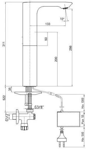 • Длина излива: 133 см