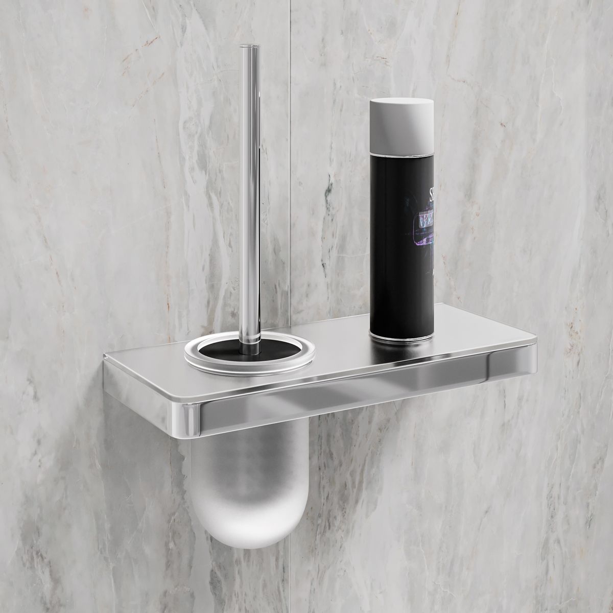 Ёршик для унитаза Lemark Glass Line 9761031 с держателем и полкой хром/белое стекло купить