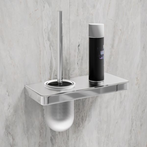 Ёршик для унитаза Lemark Glass Line 9761031 с держателем и полкой хром/белое стекло