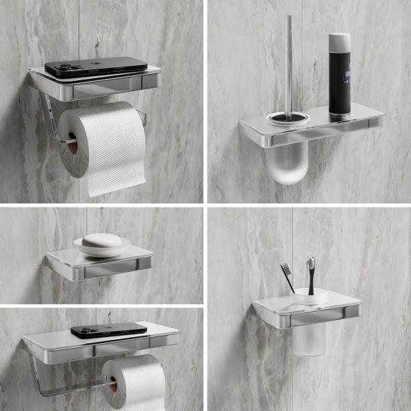 Коллекция представлена в трёх основных цветах: универсальный хром, трендовый чёрный матовый и графит, прекрасно дополнит интерьер ванной и туалетной комнаты, а также добавит функциональности Вашему помещению. Идеально сочетается с сериями смесителей LEMARK в аналогичных цветах.