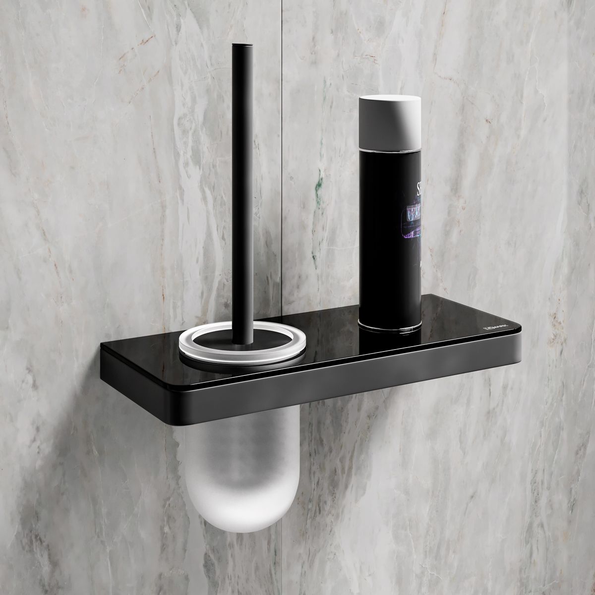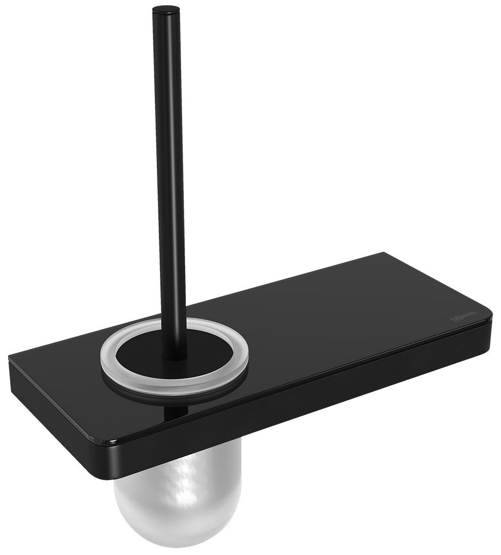 Ёршик для унитаза Lemark Glass Line 9762033 с держателем и полкой чёрный матовый/чёрное стекло
