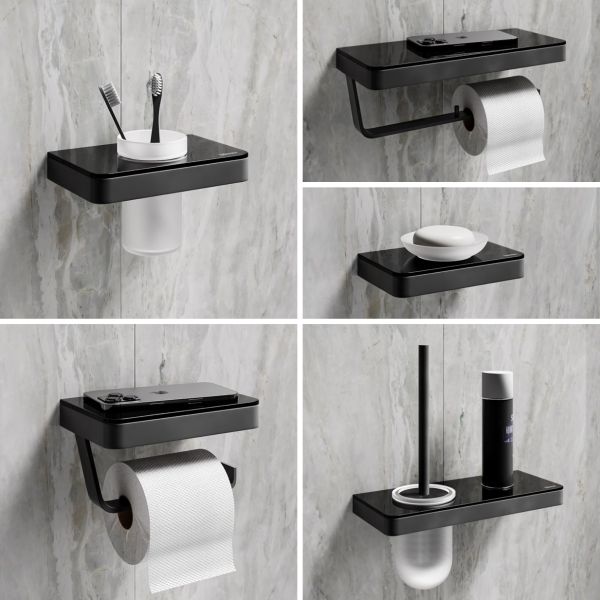 Ёршик для унитаза Lemark Glass Line 9762033 с держателем и полкой чёрный матовый/чёрное стекло купить