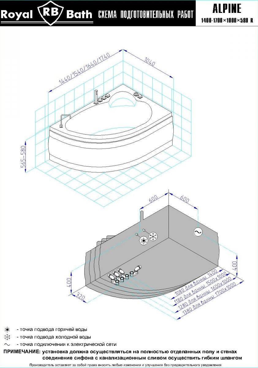 Акриловая ванна Royal Bath - идеальный выбор для создания атмосферы релакса и умиротворения, как в просторной в ванной комнате, так и в комнатном санузле. Основным преимуществом ванны из акрила считается её малый вес, высокая гигиеничность данного материала и низкая теплопроводность, долго сохраняющая комфортную температуру воды.Форма ванны Royal Bath замечательно подойдет к любому интерьерному решению, в различных вариантах размещения внутри ванной комнаты. Пристенная установка - это наиболее традиционный вид установки, а при использовании декоративного экрана пространство под ванной можно использовать как место хранения моющих средств. Оптимальная глубина позволяет принимать ванну с максимальным комфортом и полным расслаблением. Ванна Royal Bath выполнена со строгим соблюдением всех значительных элементов современного стиля.Благодаря тому, что родина бренда Royal Bath - Россия, можно смело быть уверенным в непревзойденном качестве и долговечности ванны, так как производство полностью соответствует стандартам качества. Акриловая ванна Royal Bath - это незаменимый, основной элемент любой ванной комнаты, без которого невозможно обойтись, ни в многоквартирном доме, ни в загородном коттедже.Комплектация гидромассажной ванны:- акриловая ванна Alpine 150x100x58;- каркас сварной к ванне Alpine 150;- панель к ванне Alpine 150;- гидромассажная система на 6 форсунок;- спинной массаж на 6 форсунок;- аэромассаж с хромотерапией 8 форсунок;- слив-перелив для ванны полуавтомат 60 см.Ожидаемый срок поставки 7 дней.Обратите внимание: данная позиция поставляется под заказ! Товар поставляется по 100%-ной предоплате.Данный товар является заказным и имеет индивидуально-определенные свойства.