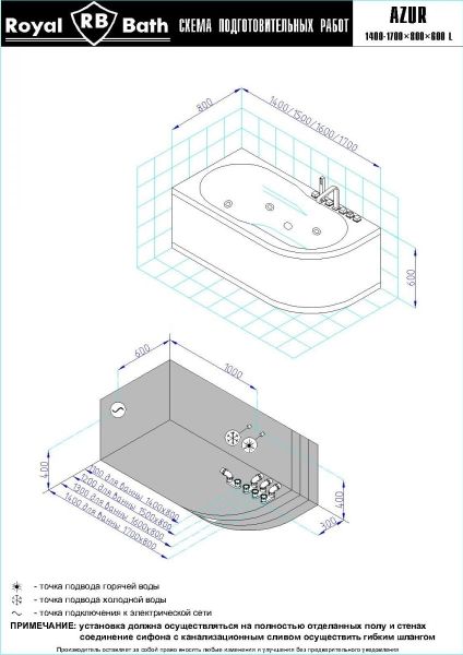 Акриловая ванна Royal Bath - идеальный выбор для создания атмосферы релакса и умиротворения, как в просторной в ванной комнате, так и в комнатном санузле. Основным преимуществом ванны из акрила считается её малый вес, высокая гигиеничность данного материала и низкая теплопроводность, долго сохраняющая комфортную температуру воды.Форма ванны Royal Bath замечательно подойдет к любому интерьерному решению, в различных вариантах размещения внутри ванной комнаты. Пристенная установка - это наиболее традиционный вид установки, а при использовании декоративного экрана пространство под ванной можно использовать как место хранения моющих средств. Оптимальная глубина позволяет принимать ванну с максимальным комфортом и полным расслаблением. Ванна Royal Bath выполнена со строгим соблюдением всех значительных элементов современного стиля.Благодаря тому, что родина бренда Royal Bath - Россия, можно смело быть уверенным в непревзойденном качестве и долговечности ванны, так как производство полностью соответствует стандартам качества. Акриловая ванна Royal Bath - это незаменимый, основной элемент любой ванной комнаты, без которого невозможно обойтись, ни в многоквартирном доме, ни в загородном коттедже.Комплектация гидромассажной ванны:- акриловая ванна Azur 160x80x60;- каркас сварной к ванне Azur 160;- панель к ванне Azur 160;- гидромассажная система на 5 форсунок;- спинной массаж на 6 форсунок;- аэромассаж с хромотерапией 8 форсунок;- слив-перелив для ванны полуавтомат 60 см.Ожидаемый срок поставки 7 дней.Обратите внимание: данная позиция поставляется под заказ! Товар поставляется по 100%-ной предоплате.Данный товар является заказным и имеет индивидуально-определенные свойства.
