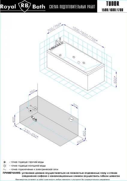 Акриловая ванна Royal Bath - идеальный выбор для создания атмосферы релакса и умиротворения, как в просторной в ванной комнате, так и в комнатном санузле. Основным преимуществом ванны из акрила считается её малый вес, высокая гигиеничность данного материала и низкая теплопроводность, долго сохраняющая комфортную температуру воды.Форма ванны Royal Bath замечательно подойдет к любому интерьерному решению, в различных вариантах размещения внутри ванной комнаты. Пристенная установка - это наиболее традиционный вид установки, а при использовании декоративного экрана пространство под ванной можно использовать как место хранения моющих средств. Оптимальная глубина позволяет принимать ванну с максимальным комфортом и полным расслаблением. Ванна Royal Bath выполнена со строгим соблюдением всех значительных элементов современного стиля.Благодаря тому, что родина бренда Royal Bath - Россия, можно смело быть уверенным в непревзойденном качестве и долговечности ванны, так как производство полностью соответствует стандартам качества. Акриловая ванна Royal Bath - это незаменимый, основной элемент любой ванной комнаты, без которого невозможно обойтись, ни в многоквартирном доме, ни в загородном коттедже.Комплектация гидромассажной ванны:- акриловая ванна Tudor 150x70x60;- каркас сварной к ванне Tudor 150;- панель фронтальная к ванне Tudor 150;- панель боковая Tudor/Vienna 70 L;- панель боковая Tudor/Vienna 70 R;- гидромассажная система на 6 форсунок;- слив-перелив для ванны полуавтомат 60 см.Ожидаемый срок поставки 7 дней.Обратите внимание: данная позиция поставляется под заказ! Товар поставляется по 100%-ной предоплате.Данный товар является заказным и имеет индивидуально-определенные свойства.