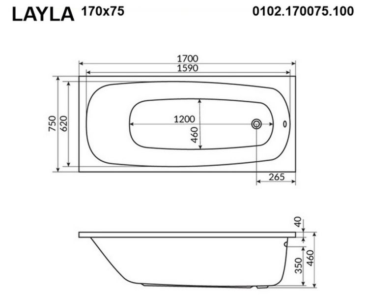 Гидромассажная ванна Whitecross Layla 0102.170075.100.RELAX.BR 170x75см Relax бронза