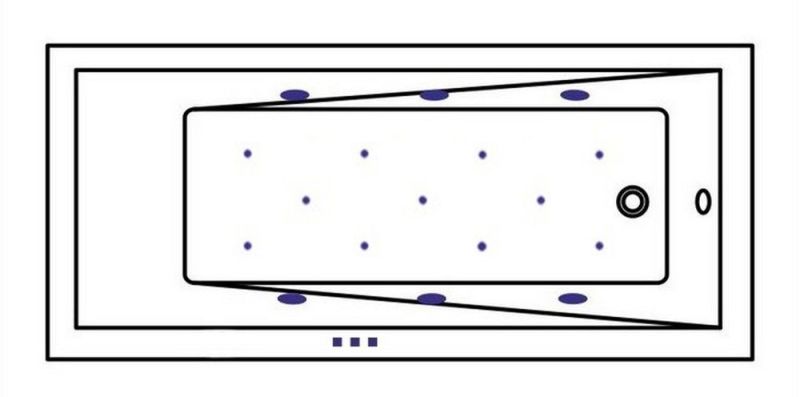 - Аэромассажная система (11 форсунок AERO-JET) с функцией регулировки интенсивности массажа;