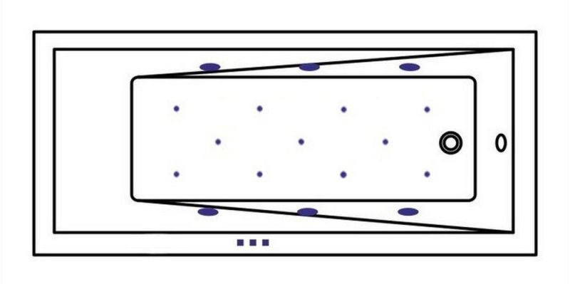 - Аэромассажная система (11 форсунок AERO-JET) с функцией регулировки интенсивности массажа;