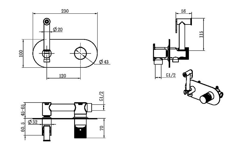 Гигиенический душ со шлангом.