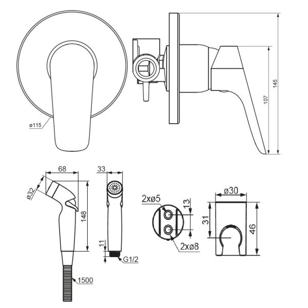 Гигиенический душ Damixa Jupiter 777510300 черныйГигиенический душ. Цвет-черный матовый. В комплект поставки входит: корпус смесителя, гигиенический душ, держатель для гигиенического душа, шланг с прокладками, инструкция изделия