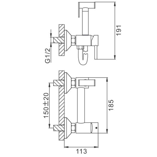 Способ монтажа:На два отверстия, Настенные
