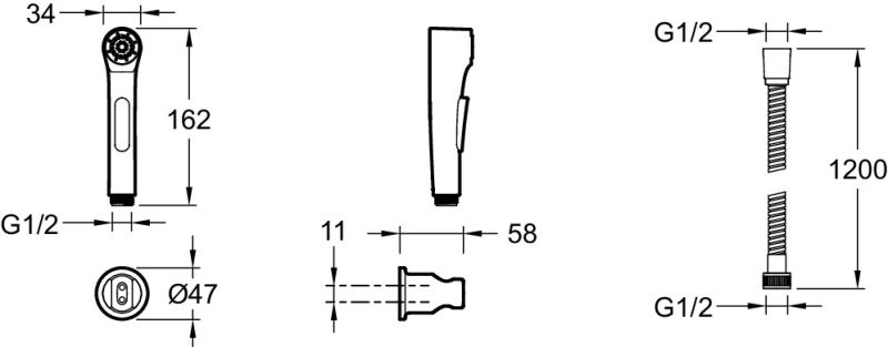 Гигиенический душ Jacob Delafon ELATE E97258-CP со шлангом 120 см и держателем