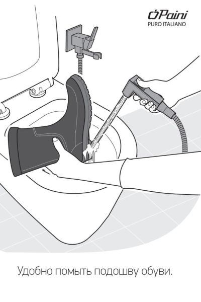 • С помощью гигиенического душа очень легко ополоснуть подошву обуви, горшок ребенка, лоток для животного.