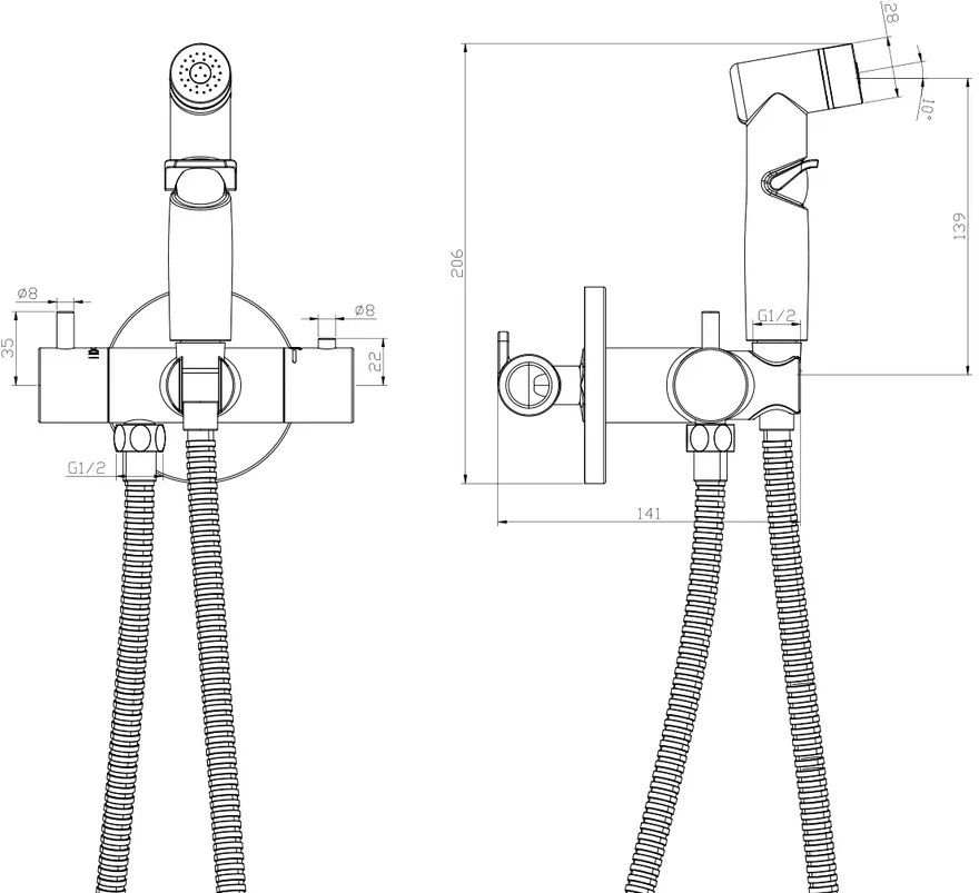 Гигиенический душ Rossinka с термостатическим смесителем хром X X25-58