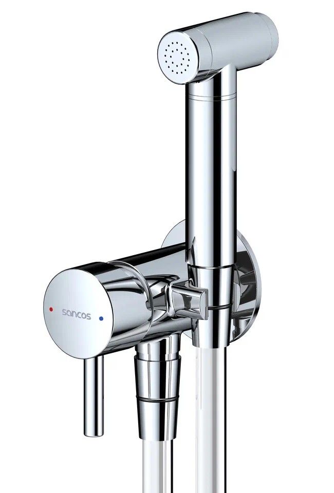 Гигиенический душ SANCOS Atom со смесителем, c внутренней частью, цвет хром глянцевый, встраиваемый, настенныйПолный комплект со смесителем