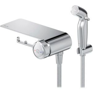 Гигиенический душ со смесителем AM.PM X-Joy TouchReel F0H85A800 ХромПервая в мире коллекция нажимных смесителей для ванной комнаты была создана в рамках коллекции X-Joy всемирно известным дизайн-бюро GP designpartners, Австрия.Интуитивная понятная система управления TouchReel для включения/выключения смесителя одним нажатием.Максимально простое управление температурой воды для тех, кто не хочет ничего настраивать. Весь продукт представляет собой удобную полочку, на которой можно разместить все, что необходимо вам под рукой. На интегрированном держателе можно размещать туалетную бумагу, а на крючке - полотенце.
