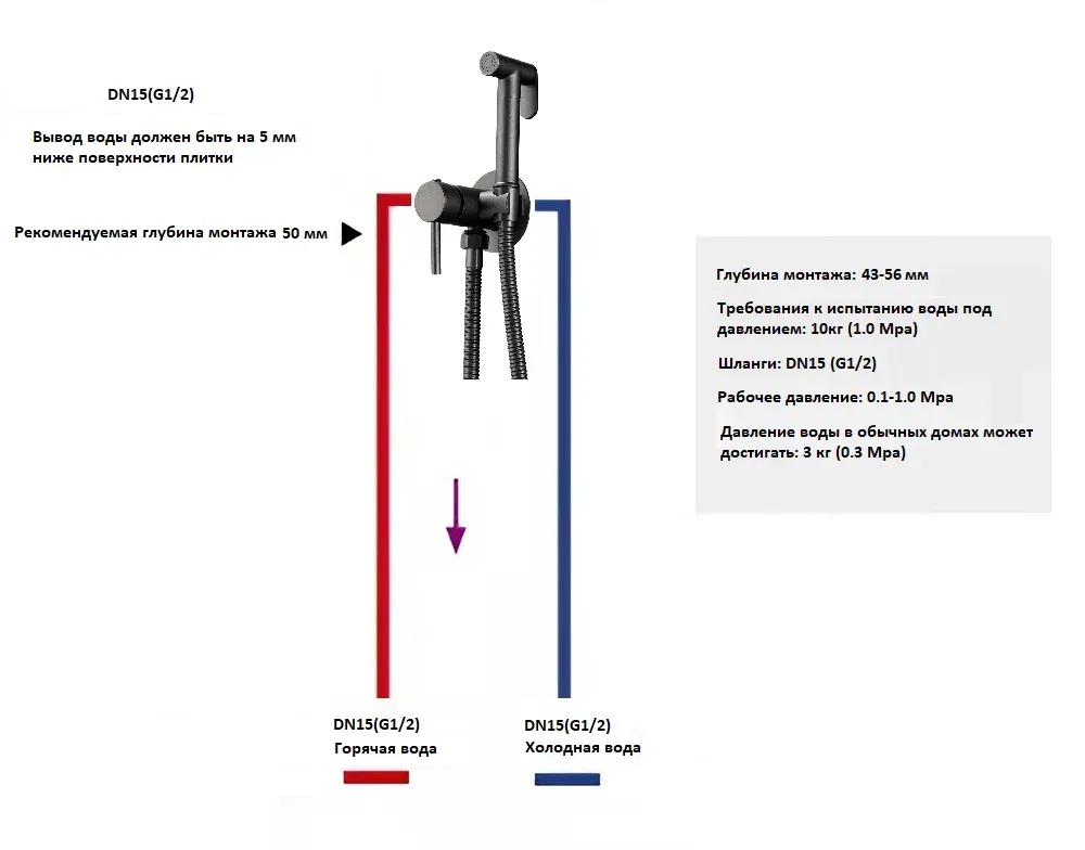• Стандарт подводки: 1/2