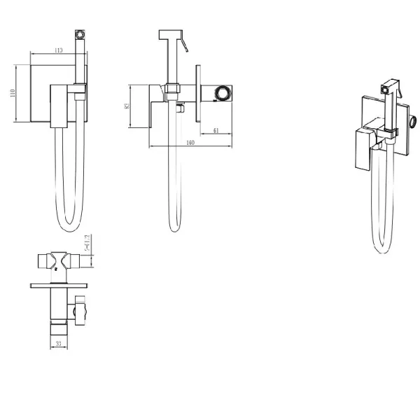 Гигиенический душ Boheme Qubic, со смесителем,Характеристики: