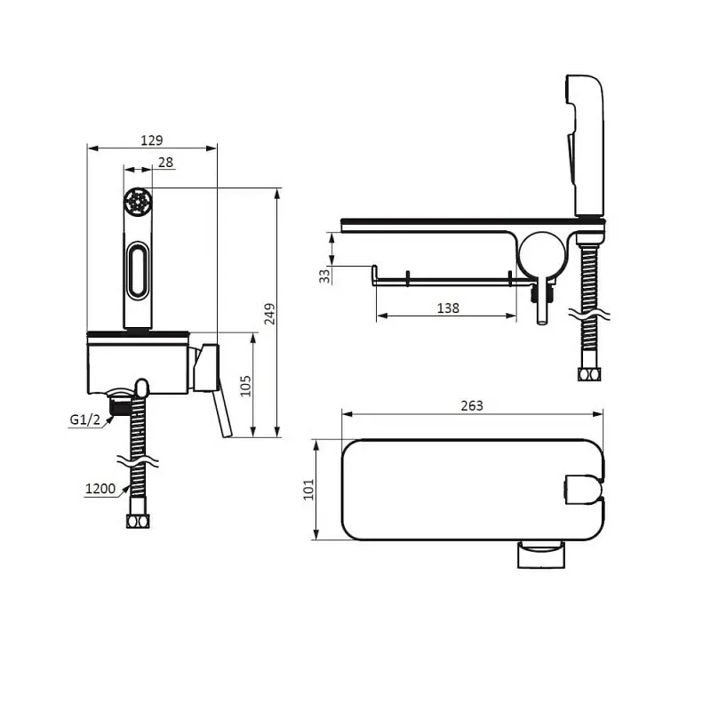 Гигиенический душ со смесителем Damixa Jupiter 773500301 черный встраиваемыйВстраиваемый гигиенический душ со смесителем Damixa Jupiter, полкой, шлангом 1200 мм и держателем для туалетной бумаги. Современное решение для вашего удобства и гигиены теперь в новом исполнении: смеситель с гигиеническим душем отличается простотой и комфортом в использовании, а еще он выглядит невероятно стильно. Размер (Ш/Г/В): 263x135x249 мм. Материал - латунь, пластик. Цвет - черный. 1 режим гигиенического душа - Spray.