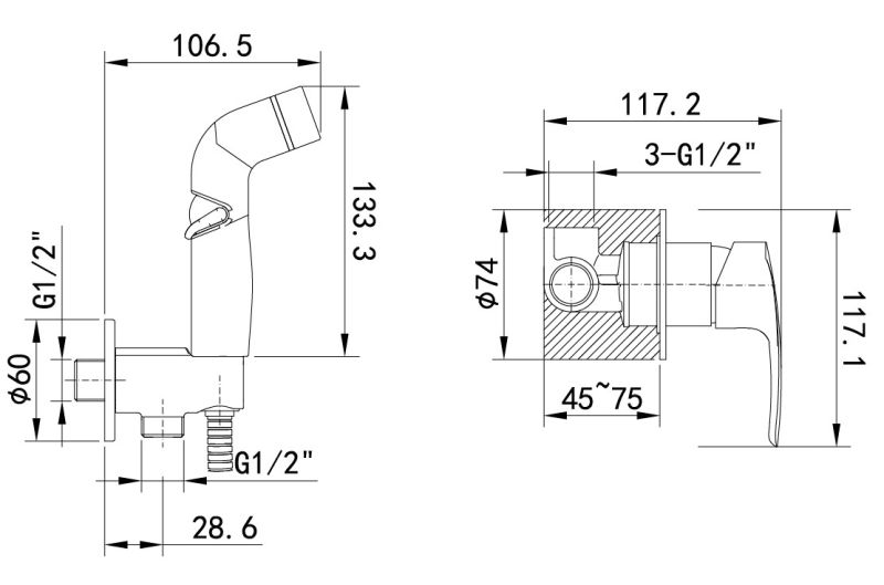 Cмеситель с гигиеническим душем Ray на 2 отверстия в трендовом черном цвете имеет универсальный дизайн и подойдет для различных вариантов интерьерных решений. Тонкий баланс плавных линий и строгой формы изделия позволяет придать ему удивительно гармоничный и завершенный облик. Смеситель скрытого монтажа Ray будет занимать минимум пространства туалетной или ванной комнаты, деликатно служа для решения важных гигиенических задач. В комплекте лейка и душевой шланг из ПВХ (1,2 м). • Смеситель IDDIS® прослужит долго благодаря надежному корпусу из прочной латуни, стойкому к коррозии, резким изменениям давления и перепадам температуры воды. • Плавный ход ручки и абсолютная точность регулировки температуры и напора воды — за счет качественного керамического картриджа Softap. • Гарантия на смесители IDDIS® – 10 лет. Гарантия на лейку и шланг – 3 года. (с) Авторский текст, июль 2021 г.
