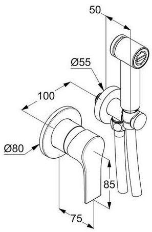 • гигиенический набор - комплект: встраиваемый смеситель для душа внутренняя часть и внешний элемент гигиенический душ с кнопкой включения воды