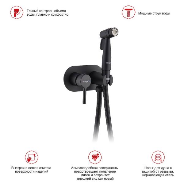 Гигиенический душ со смесителем Raglo R20.52.06 чёрный