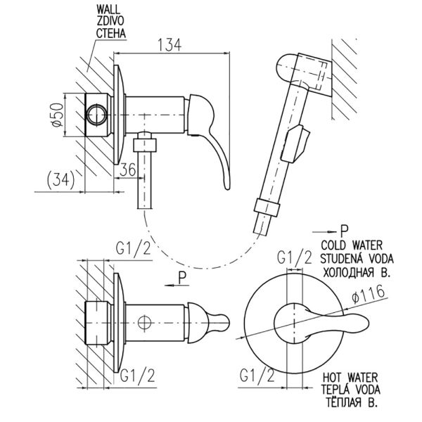 Гигиенический душ со смесителем Rav Slezak Labe L547/1SM бронза купить