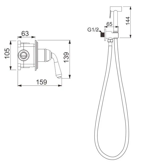 Гигиенический душ со смесителем Rose R0205H, черный.Управление: рычажное.Материал: латунь.Монтаж: внутренний (скрытый).