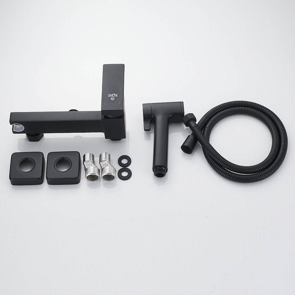 Гигиенический душ со смесителем Rose R2805H-1 чёрный матовый купить