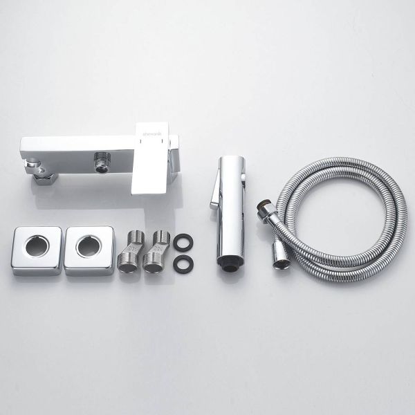 Гигиенический душ Shevanik со смесителем угловатой формы изготовлен из высококачественной латуни, обеспечивая прочность и долговечность. Уникальная конструкция корпуса смесителя выполнена в виде полочки для дополнительного удобства и хранения личных гигиенических принадлежностей.