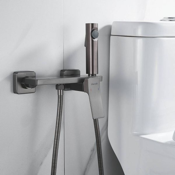 Гигиенический душ Shevanik со смесителем угловатой формы изготовлен из высококачественной латуни, обеспечивая прочность и долговечность. Уникальная конструкция корпуса смесителя выполнена в виде полочки для дополнительного удобства и хранения личных гигиенических принадлежностей.