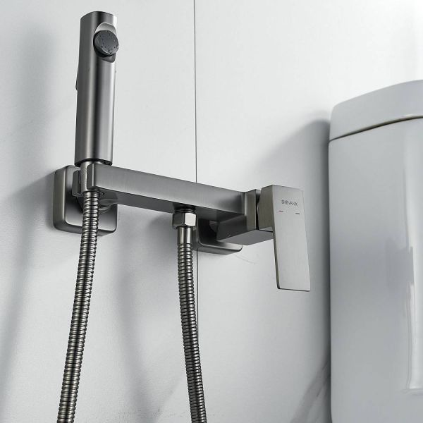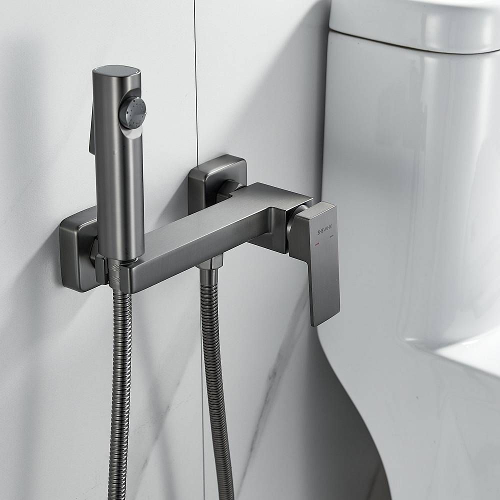 Гигиенический душ со смесителем Shevanik S9605T-1, оружейная сталь.Материал: латунь.Гарантия: 5 лет.Длина шланга: 120 см.