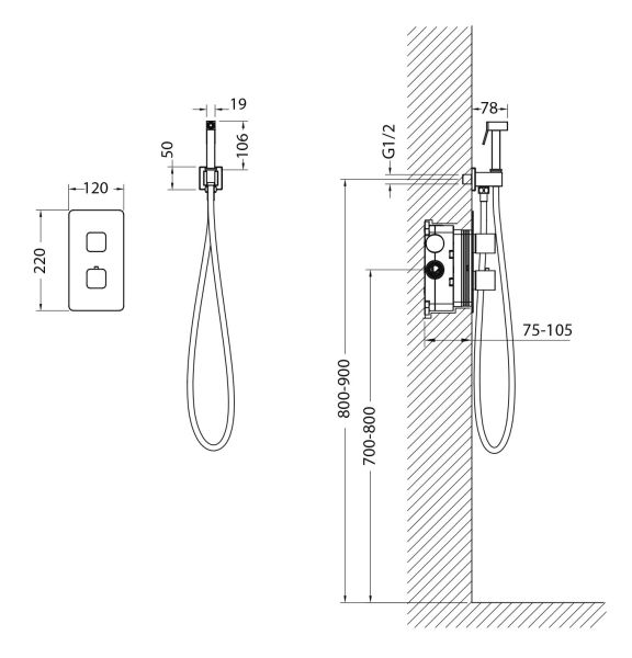 Цвет "матовое золото" никогда не выйдет из моды, во все времена драгоценный металл был признаком богатства. Встраиваемый смеситель с гигиеническим душем и термостатом Timo Petruma 5089 предназначен для монтажа в твердой или полой стене. Основные преимущества встроенного смесителя: элегантный внешний вид, все коммуникации и крепления спрятаны в стену, снаружи видны только декоративные элементы. Установить встроенный смеситель можно в любом месте. Регулировка температуры воды осуществляется ручкой термостата (расположена снизу), термостатический картридж поддерживает стабильную температуру воды. Управление смесителем осуществляется поворотом ручки (расположена сверху) влево. В положнии верхней ручки 12:00 смеситель выключен. Длины шланга 1,2 метра хватает для решения гигиенических задач. Можно также использовать например, для мытья собаки после прогулки или наполнения ведра воды и т.д. Смеситель отлично сочетается с инсталляцией для унитаза. Сложностей монтажа не возникает при установке смесителя опытным сантехником. Внимательно изучите инструкцию по монтажу и эксплуатации.