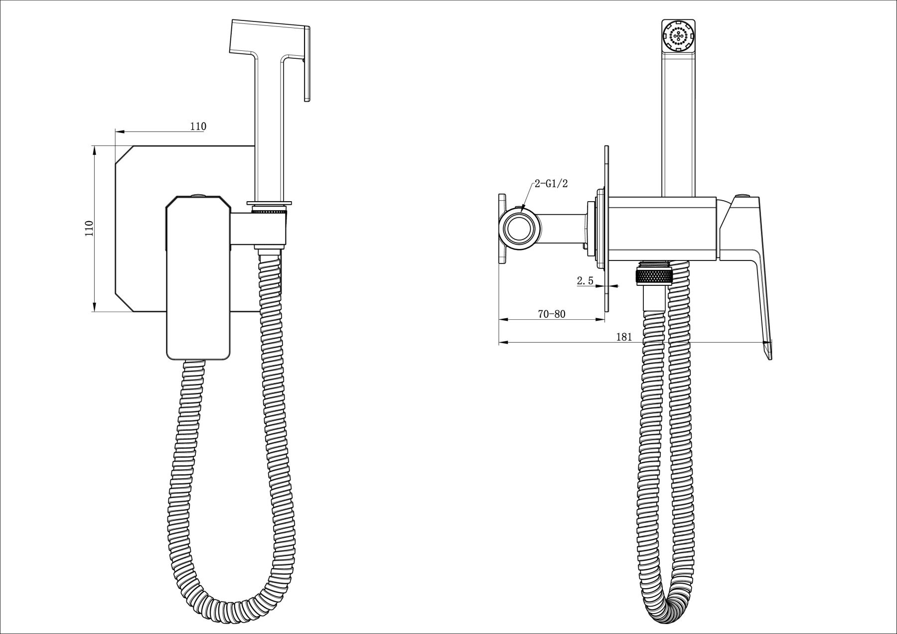 Гигиенический душ со смесителем Wonzon & Woghand Diamond WW-88829011-MB чёрный матовый