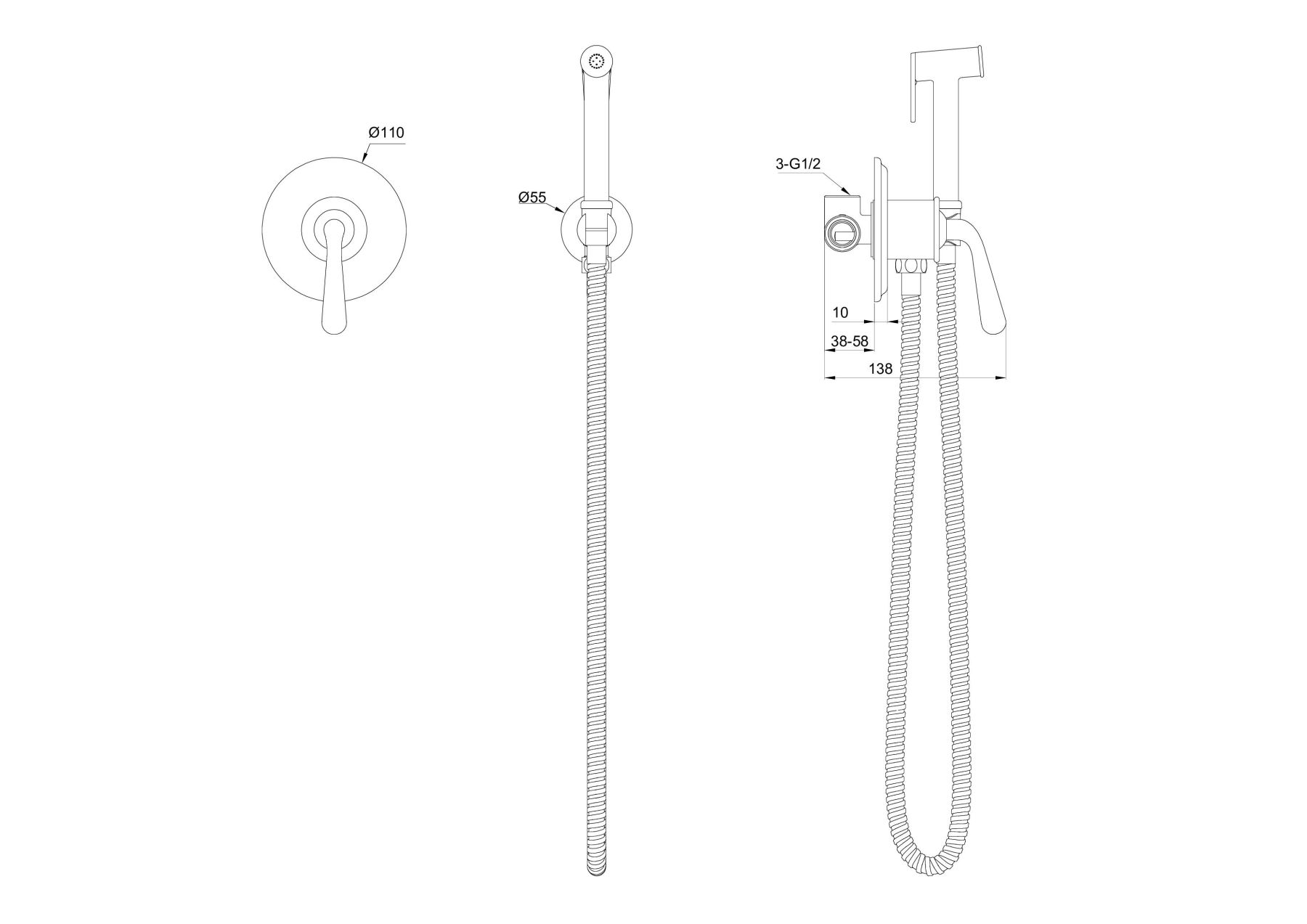 Гигиенический душ со смесителем Wonzon & Woghand Steam WW-88849008-MB чёрный матовый