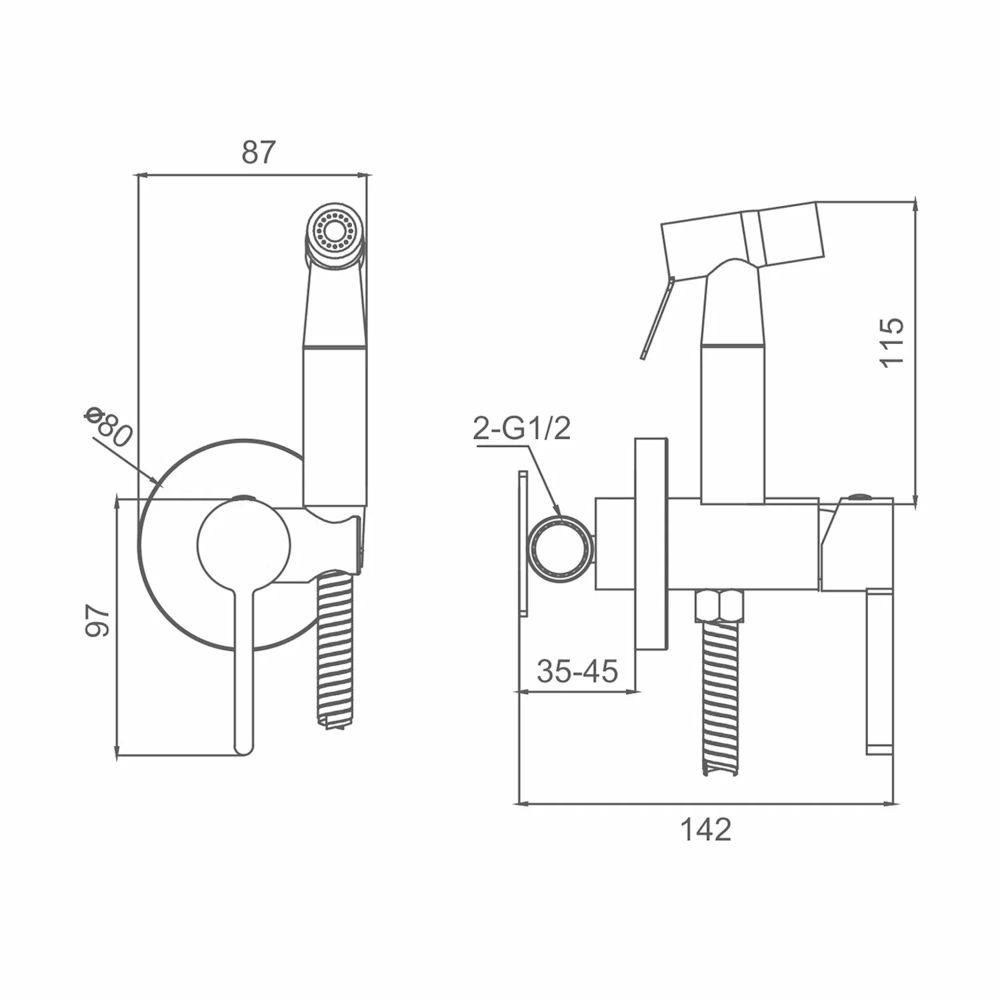Гигиенический душ со смесителем представляет собой удобный альтернативный вариант стандартному биде. Шланг обладает достаточной длиной 120 см что вполне достаточно для комфортного использования. Лейка для гигиенического душа хорошо держится в руке и обеспечивает комфорт всех проводимых манипуляций с использованием биде для унитаза. В комплекте гигиенический душ, держатель лейки и душевой шланг . Душ гигиенический со смесителем настраивается как смеситель. Имеется нажимное переключение на душ и керамический картридж диаметром 25 мм. Присоединительный размер - G 1/2, предназначен для одного потребителя. Защита от обратного потока и ограничение температуры отсутствуют.