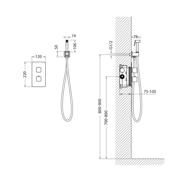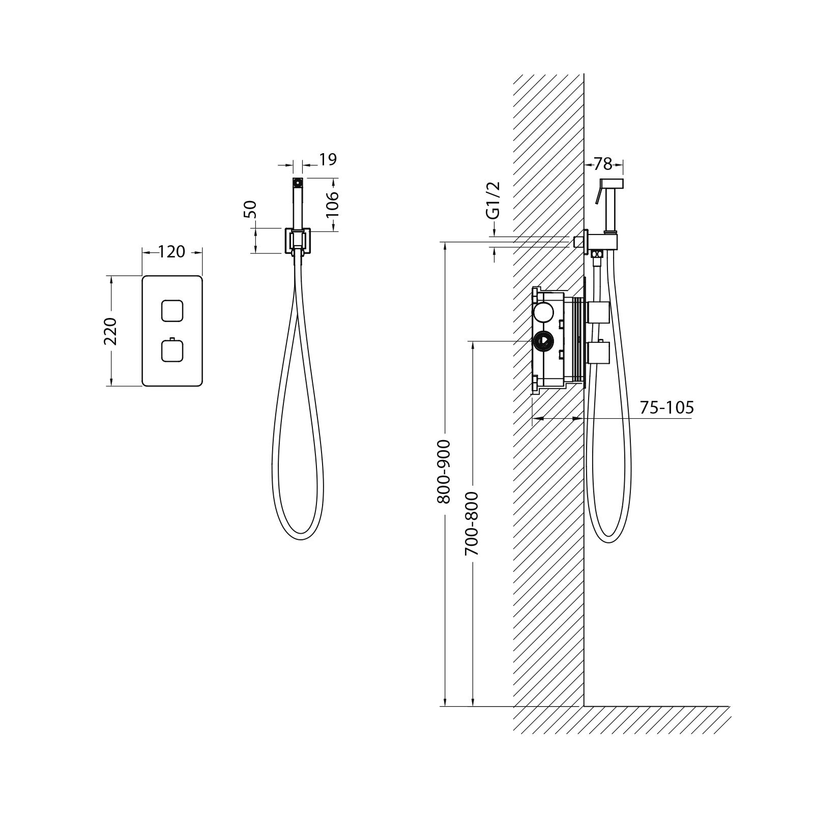 • Смеситель с монтажной коробкой, скрытого монтажа, с термостатом - 1 шт.