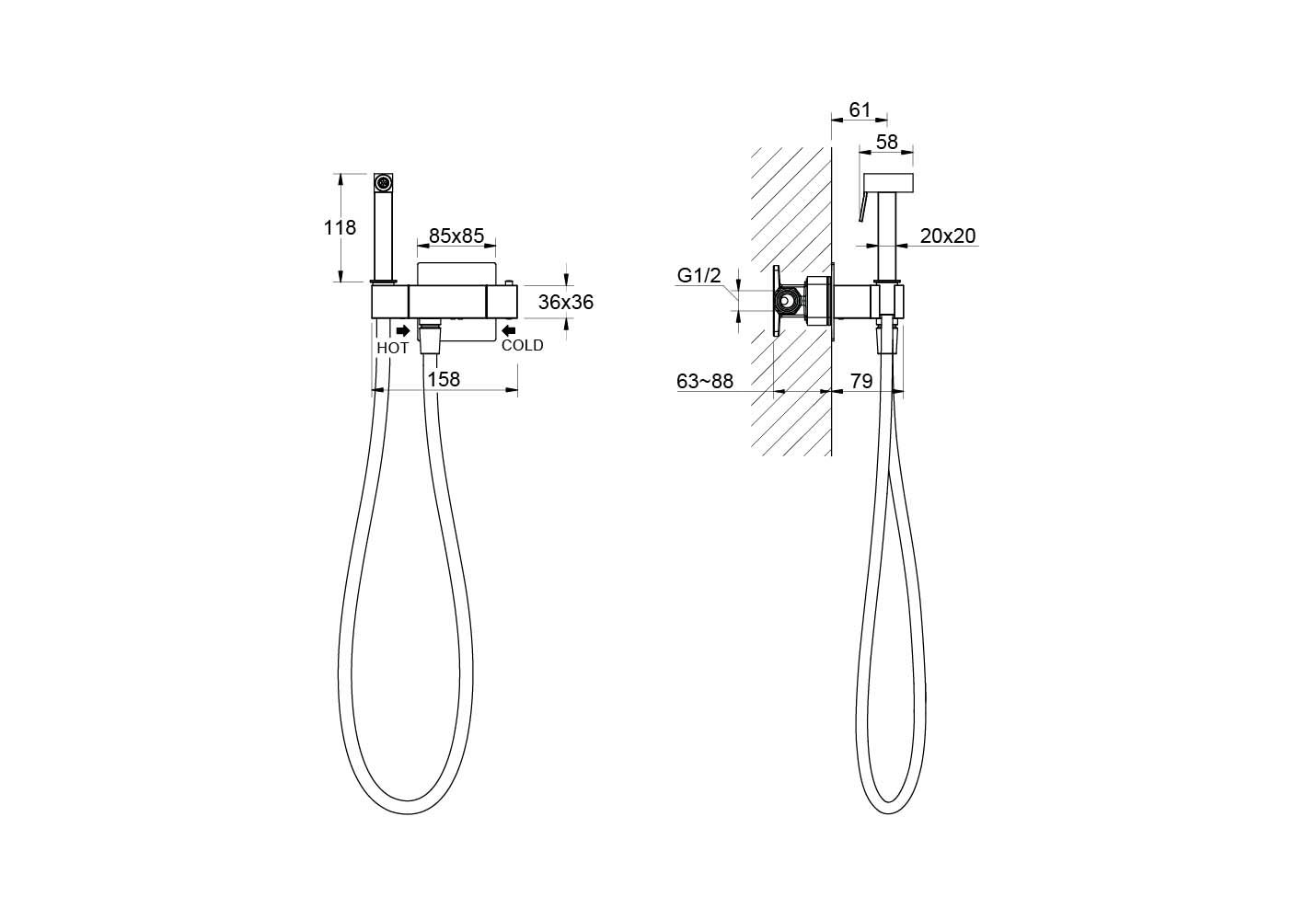Гигиенический ручной душ Aquatek Либра AQ1028MB черныйДлина, см: 15,8