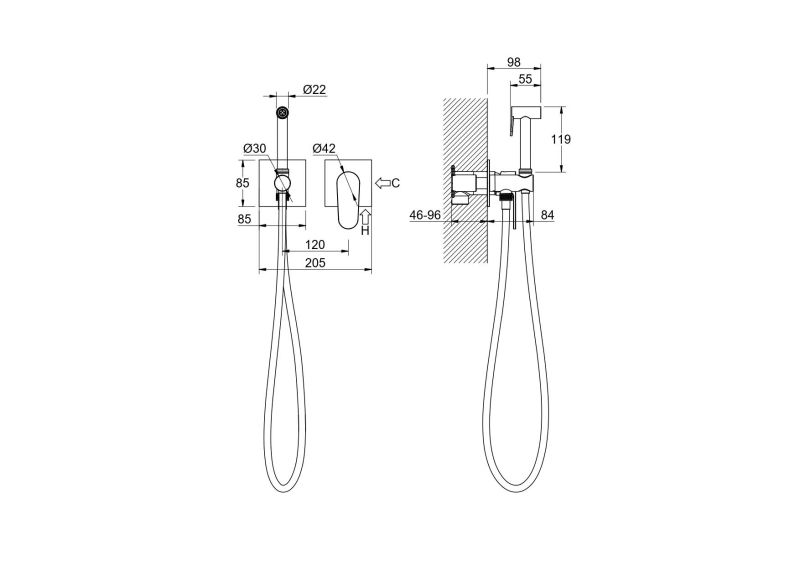 Гигиенический ручной душ Aquatek Оберон AQ1220MB черныйДлина, см: 20,5