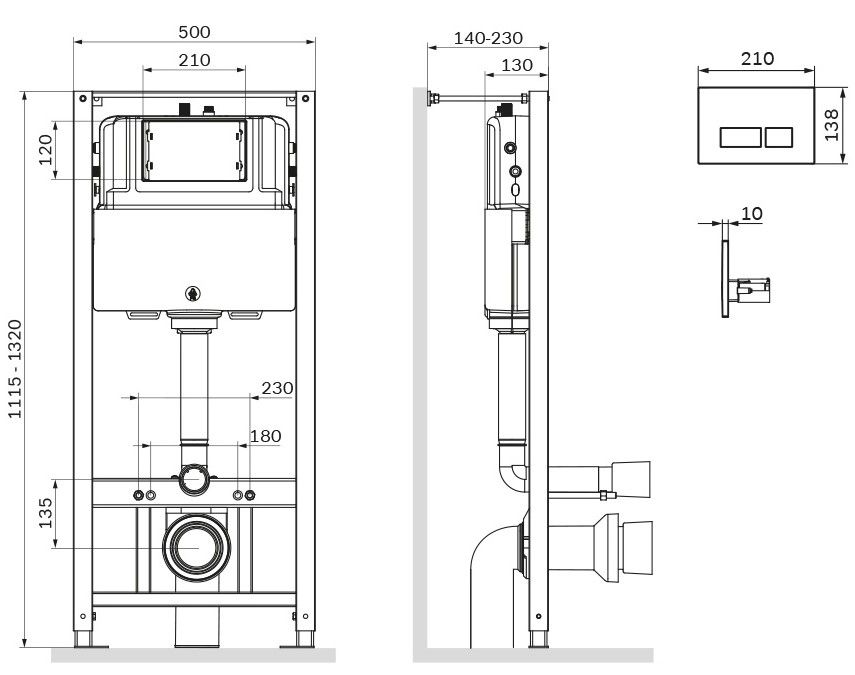 Вертикальные ребра жесткости в конструкции рамы – дополнительная опора в месте давления керамики на стену. Благодаря им инсталляция более универсальная и подходит для унитазов любых размеров, включая унитазы с небольшой контакной поверхностью. Нет необходимости докупать дополнительные аксессуары для монтажа таких унитазов