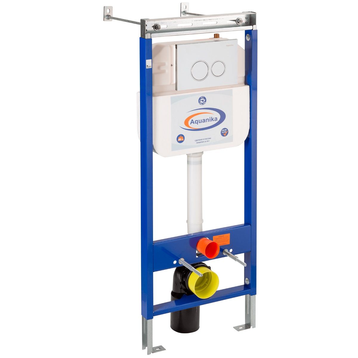 Комплектация «готовый комплект»- все необходимые крепления, патрубки, звукоизолирующая прокладка в комплекте. Вертикальные ребра жесткости в конструкции рамы – дополнительная опора в месте давления керамики на стену. Благодаря им инсталляция становится универсальной и подходит для унитазов любых размеров, включая унитазы с небольшой контактной поверхностью. Нет необходимости докупать дополнительные аксессуары для монтажа таких унитазов. Конструкция из цельного стального профиля 50*25 мм толщиной 2,0 мм позволяет выдерживать требуемую стандартами нагрузку до 400 кг. Цельно-выдувной бесшовный бачок из полиэтилена низкого давления (ПНД) с защитой от конденсата. Комфортное использование благодаря заливному клапану с низким уровнем шума – менее 20 Дб. Металлические детали конструкции инсталляции Aquanika покрыты порошковой эмалью для предотвращения появления коррозии. В сочетании приведённых характеристик мы предоставляем гарантию на данный продукт 10лет.