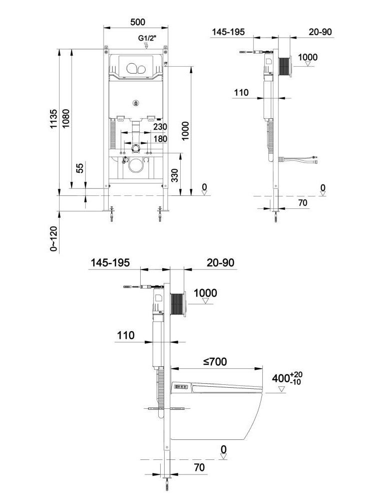 Инталляция для подвесного унитаза Smart с кнопкой смыва.