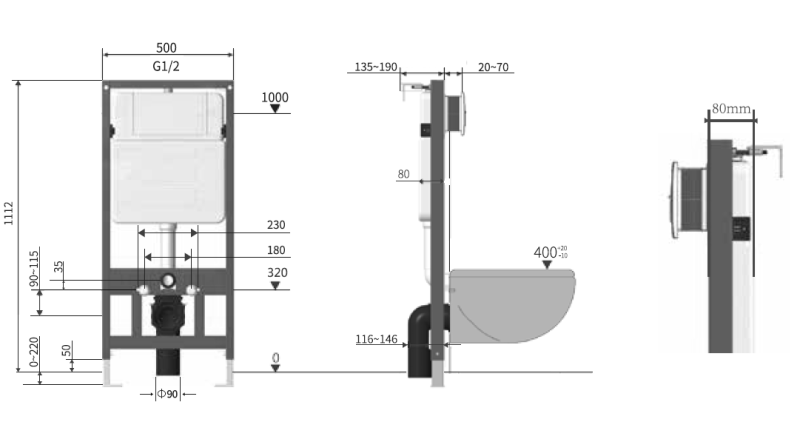 135-190Монтажная высота, мм: