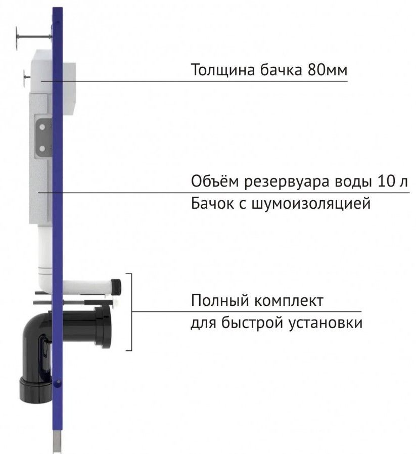 Толщина бачка 80 мм.