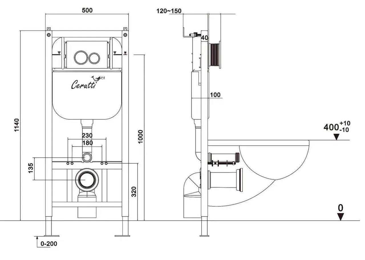 Инсталляция для унитаза Cerutti SPA CR557 с рамой повышенной коррозионной стойкости купить