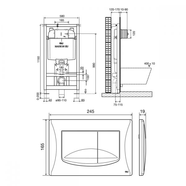 Инсталляция OLI 74 (0580*1150*0120),мех.+Панель слива RIVER DUAL пластик хр.гл.