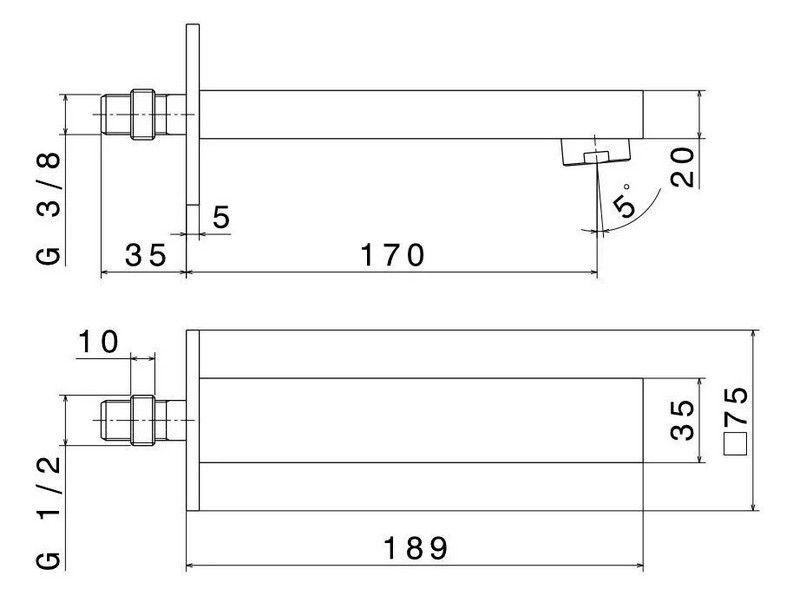 • Длина излива, см: