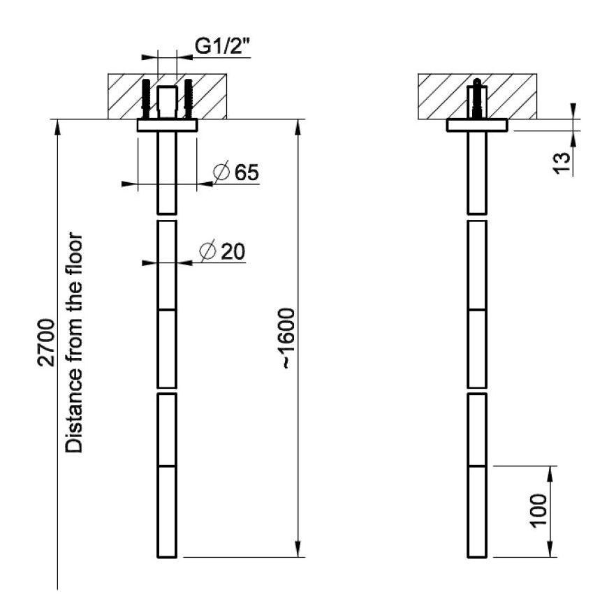 Потолочный излив Gessi 316 Flessa высотой 1600 мм выполнен в цвете Black Metal Brushed PVD — выразительный элемент для нестандартных дизайнерских решений. Он предназначен для подключения к смесителю удаленного управления и монтируется непосредственно в потолок.